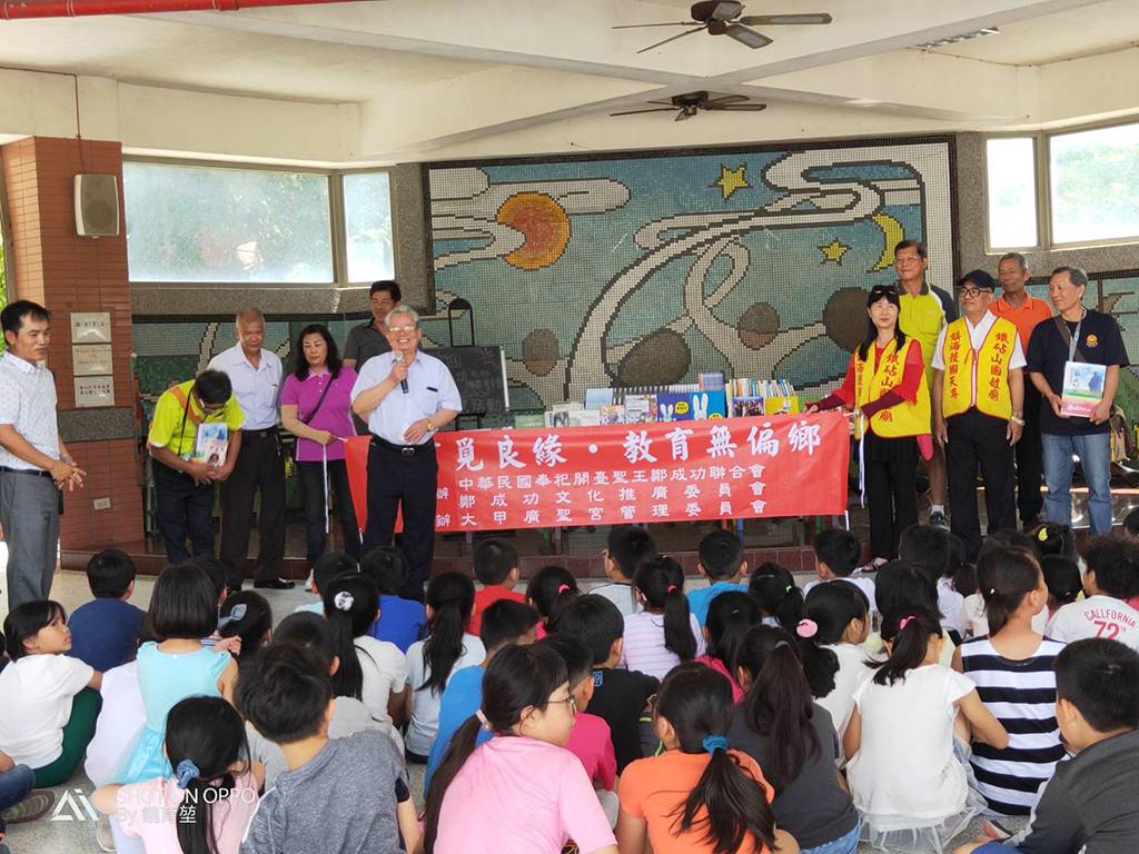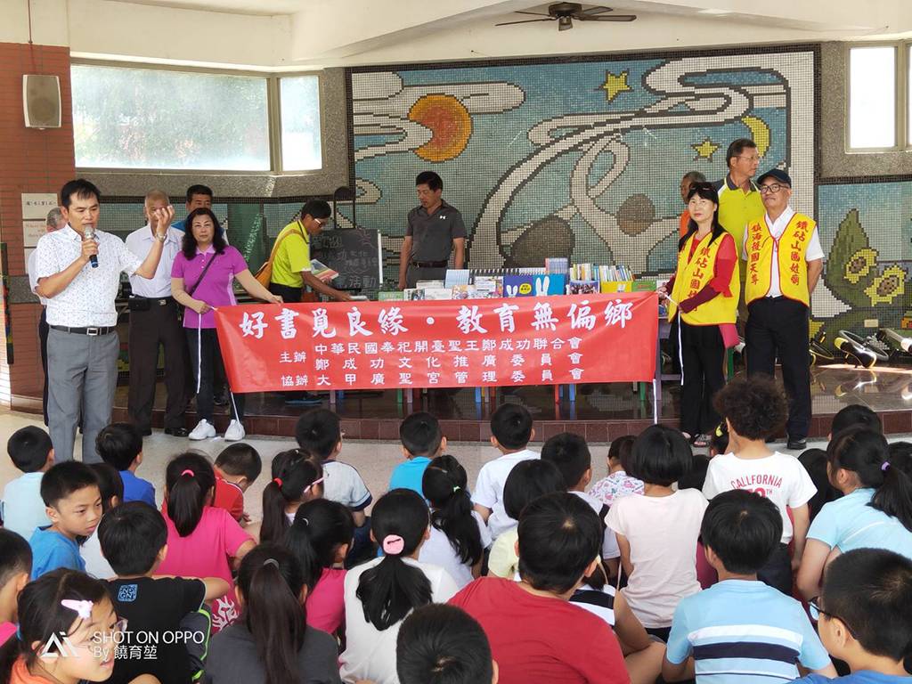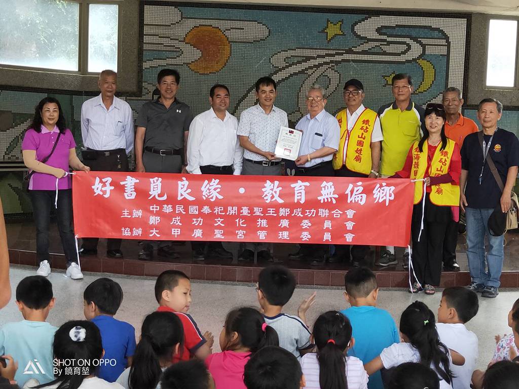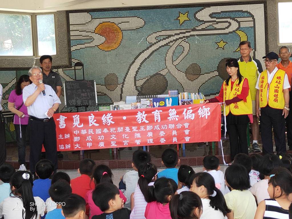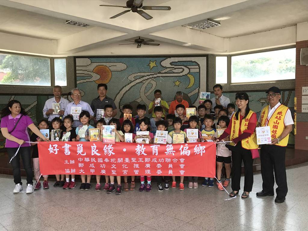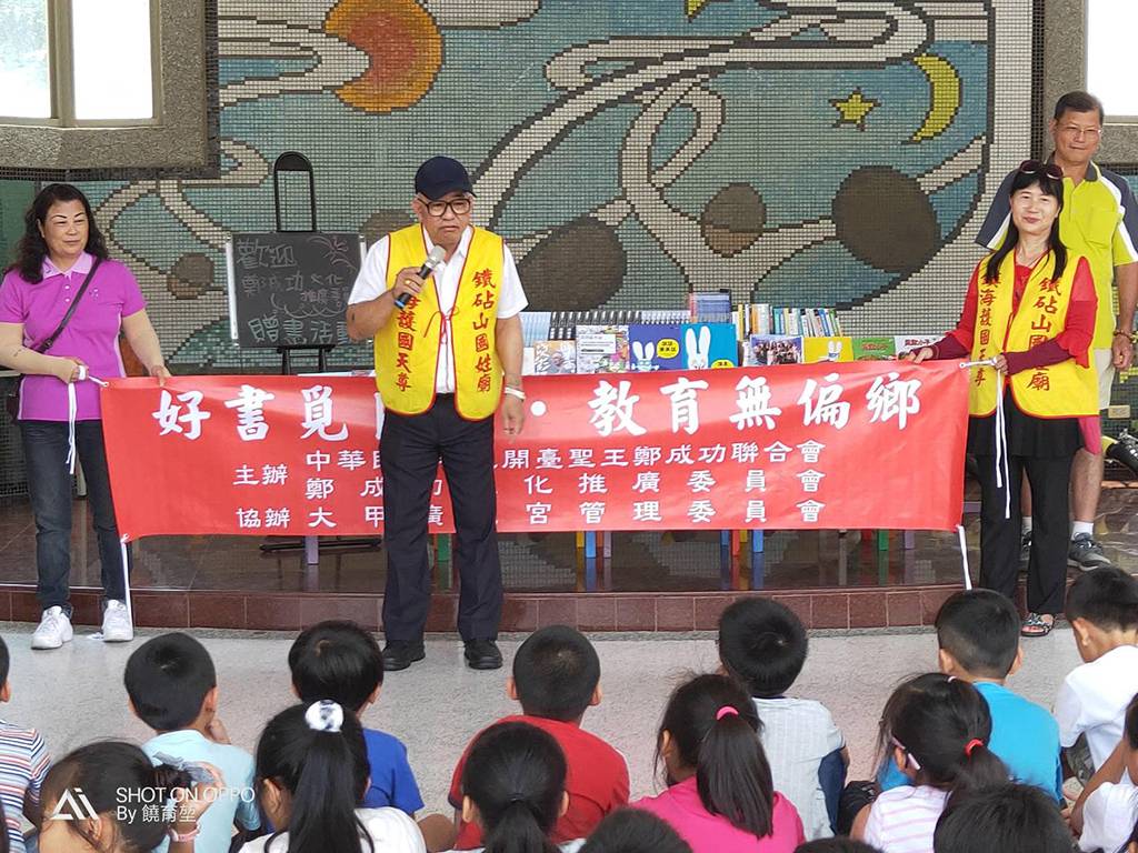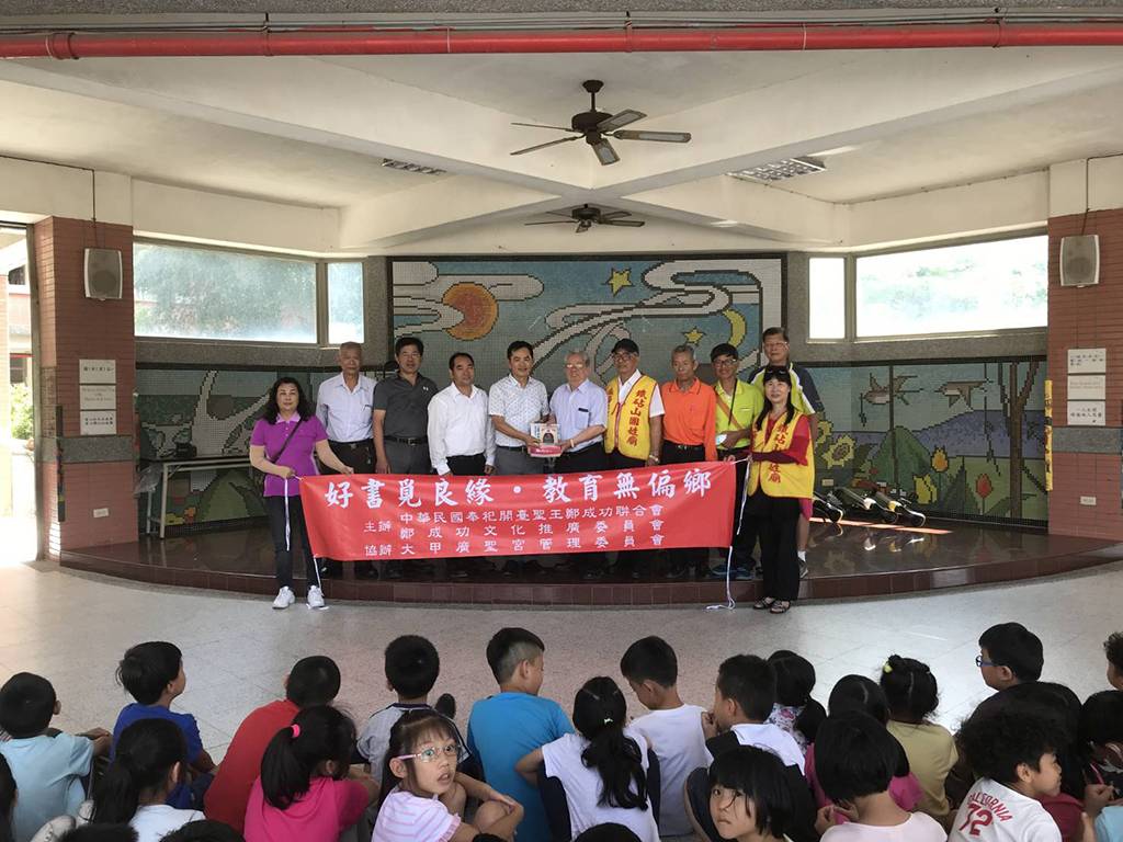 108年4月25日鐵砧山國姓廟出席「中華民國開臺聖王聯合會」大甲區德化國民小學贈書捐獻儀式。好書覓良緣●教育無偏鄉