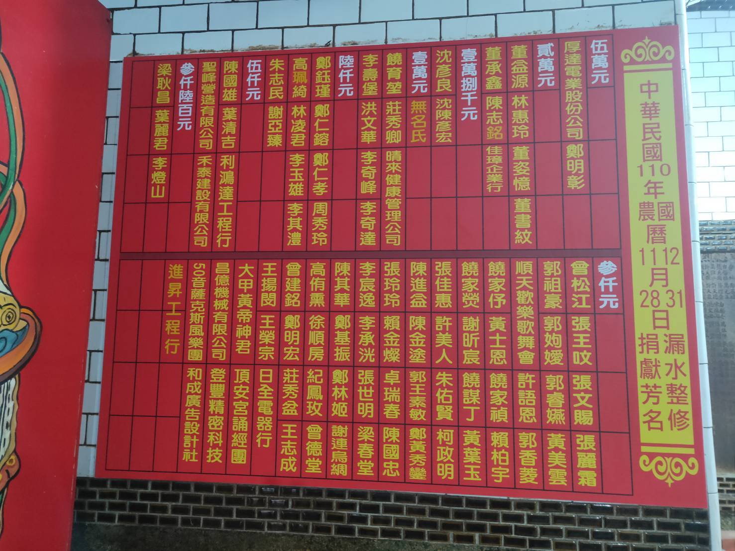 國姓廟因年久失修導致廟內漏水日益嚴重,所幸近日已募款整修,感謝十方善信大德捐獻幫忙。圓滿成功,功德無量。感恩。