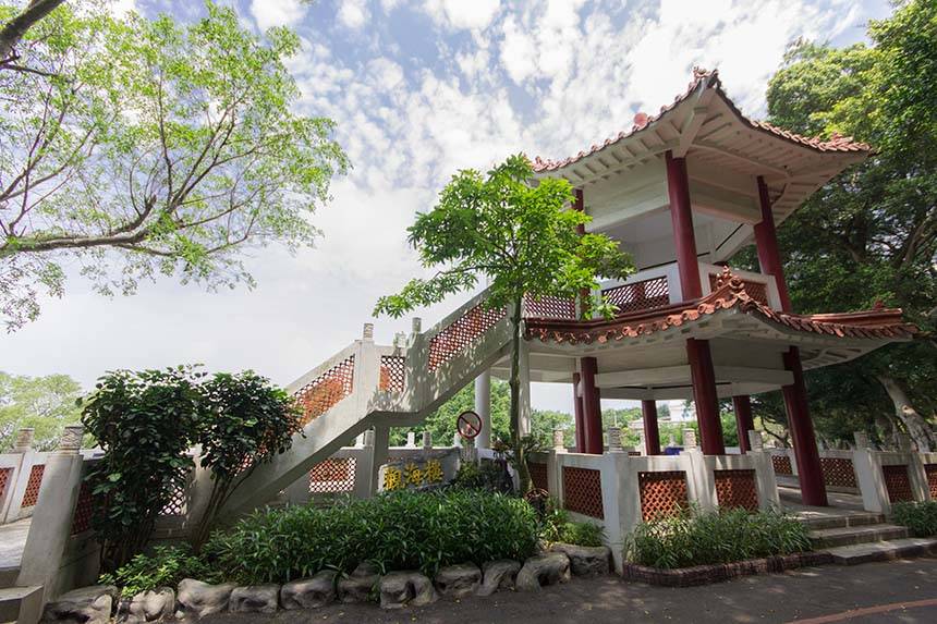 國軍紀念館大門前右側建有觀海亭,可以遠眺台灣海峽的壯觀波濤,是鐵砧山清幽的遊憩景點之一。